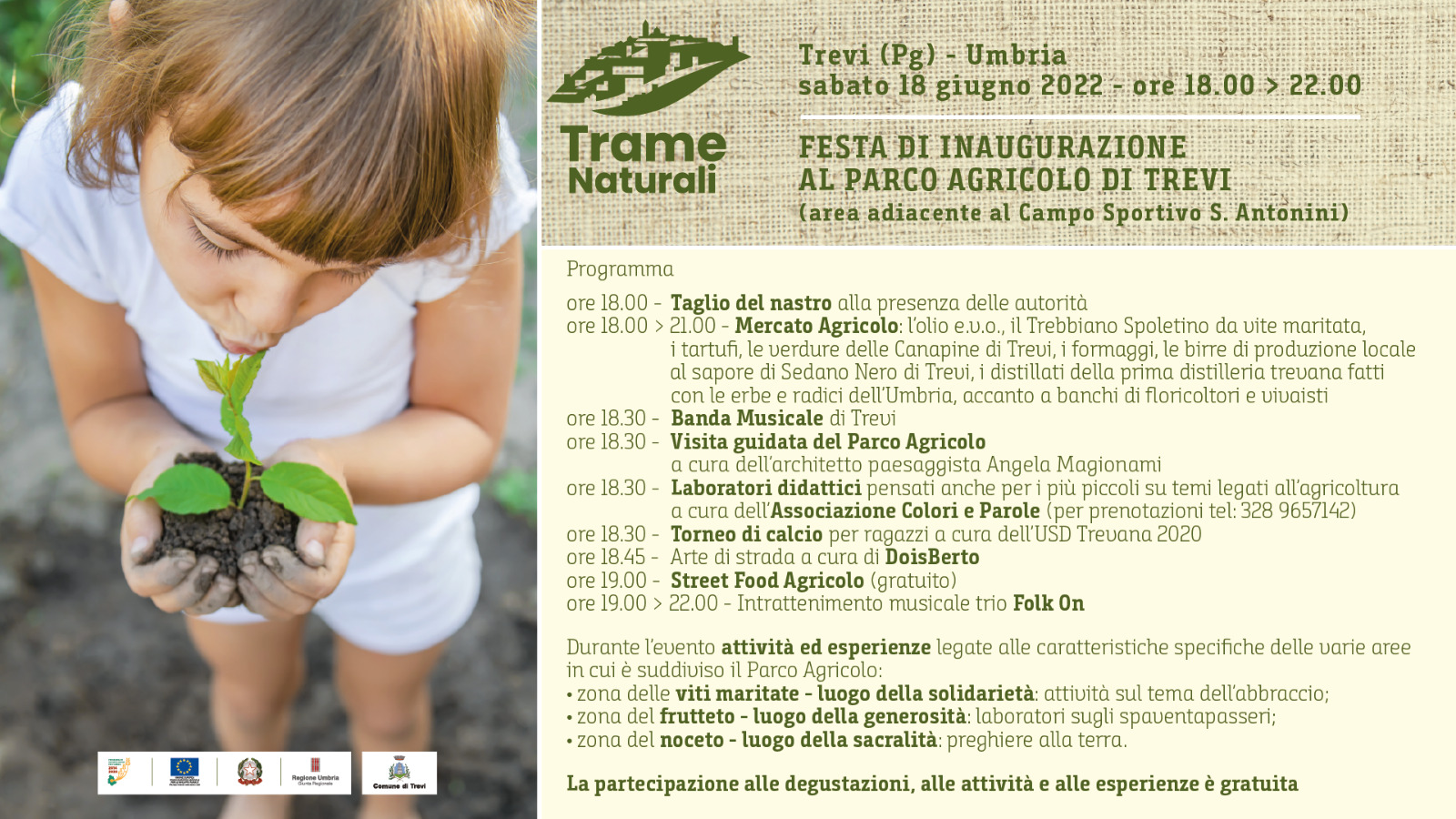 Sabato 18 giugno a Trevi (Pg), nel cuore verde dell’Umbria, si terrà la Festa di Inaugurazione del nuovo Parco Agricolo, spazio rurale, ma anche sociale, ...