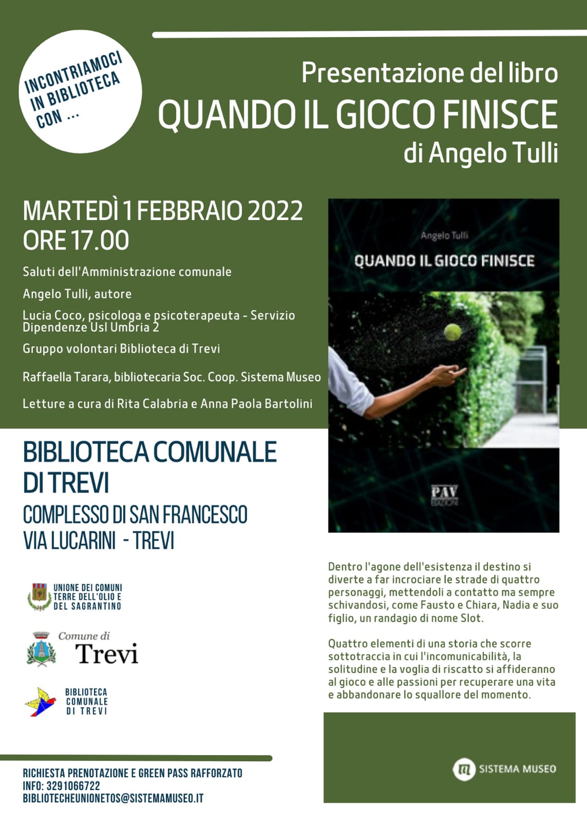 Scritto il: 29-01-2022 | Categoria: Libri1 Febbraio 2022 | Presentazione del libro "Quando il gioco finisce" di Angelo TulliLeggi di più