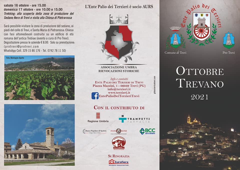 Ore 08.00/20.00 – Piazza Mazzini: “Mostra Mercato del sedano Nero” Ore 12.00 Premiazione miglior Sedano Ore 10:00 | Ore 15:00 Trekking: alla scoperta della zona di produzione del Sedano Nero di Trevi e visita alla chiesa di Pietrarossa