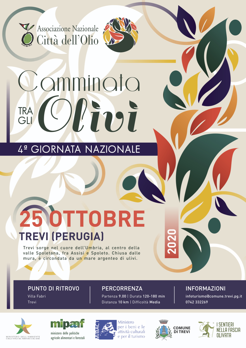 L’iniziativa, giunta alla quarta edizione, è organizzata dall’Associazione Nazionale Città dell’Olio cui il borgo umbro è stato tra i fondatori ed è capofila del raggruppamento dei sei Comuni promotori insieme ad Assisi, Spello, Foligno, Campello sul Clitunno e Spoleto per la candidatura Unesco della Fascia olivata.